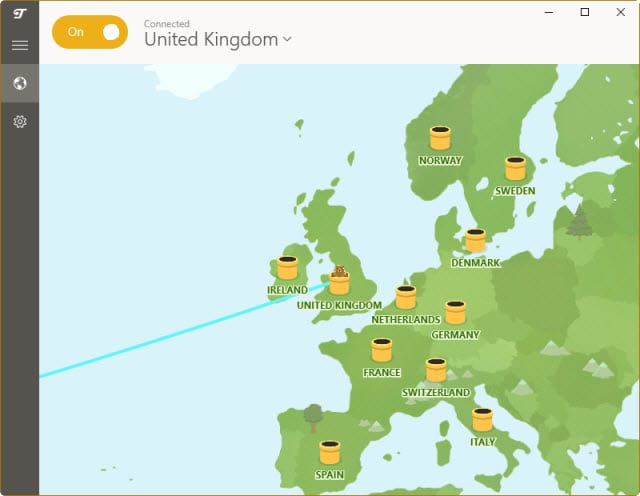 大多数服务器是免费使用的,您可以单击该标志并根据需要随时更改服务器。